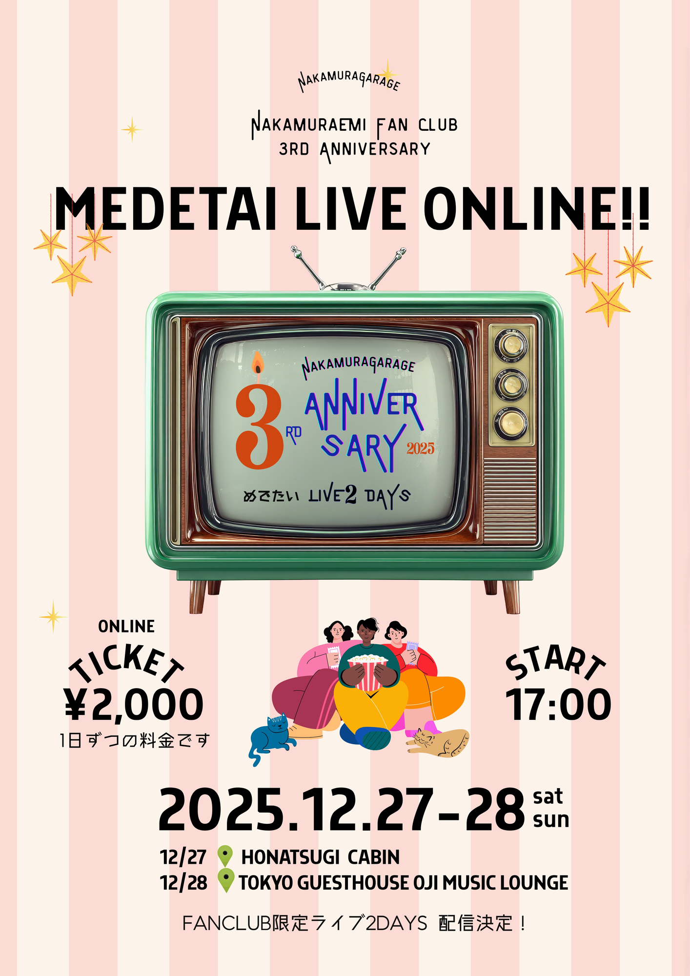 12.27-28に開催しますファンクラブ限定ライブ、2日間とも完売となっております。